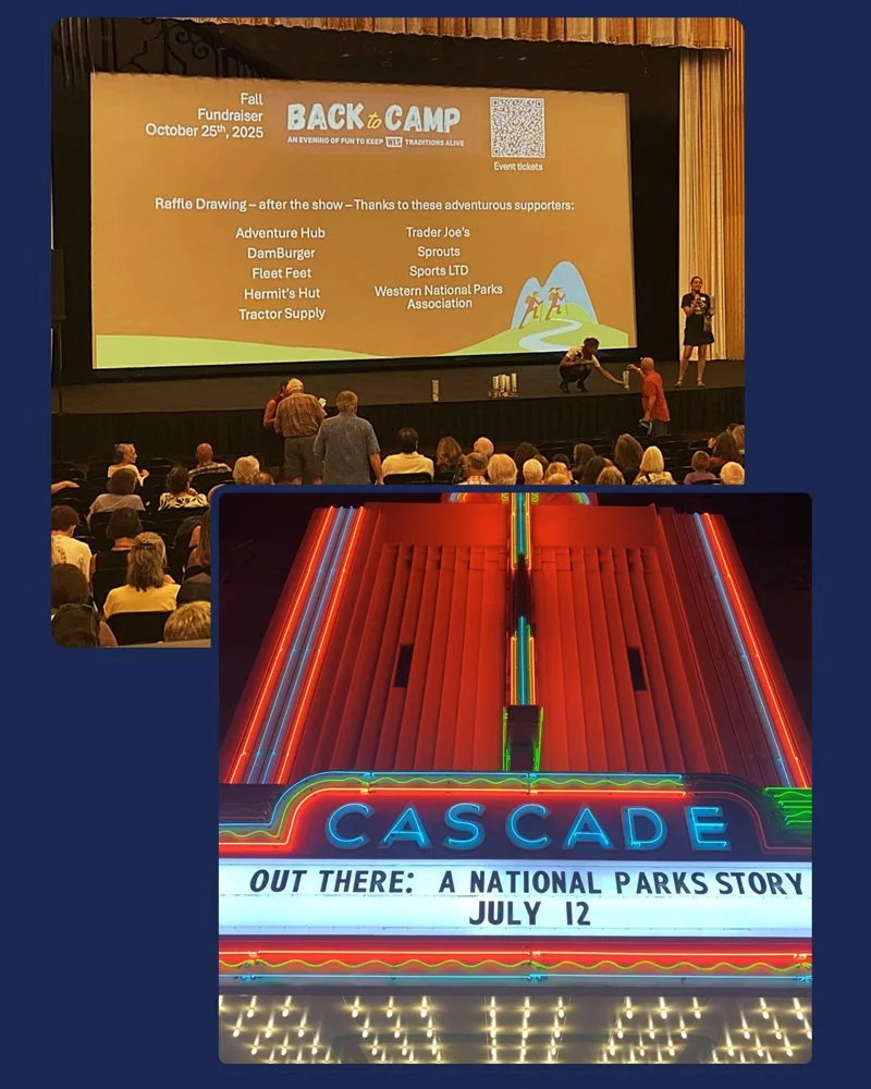 WES Community sold more than $900 in raffle tickets, thanks to the generosity of nine adventurous local businesses—Adventure Hub, Damburger, Fleet Feet, Hermit’s Hut, Tractor Supply, Trader Joe’s, Sprouts, Sports LTD, and the Western National Parks Association—each thanked on the big screen. A generous grant from the National Park Foundation helped underwrite the film rental and the Cascade Theater. All net proceeds support the rebuilding of Whiskeytown Environmental School.